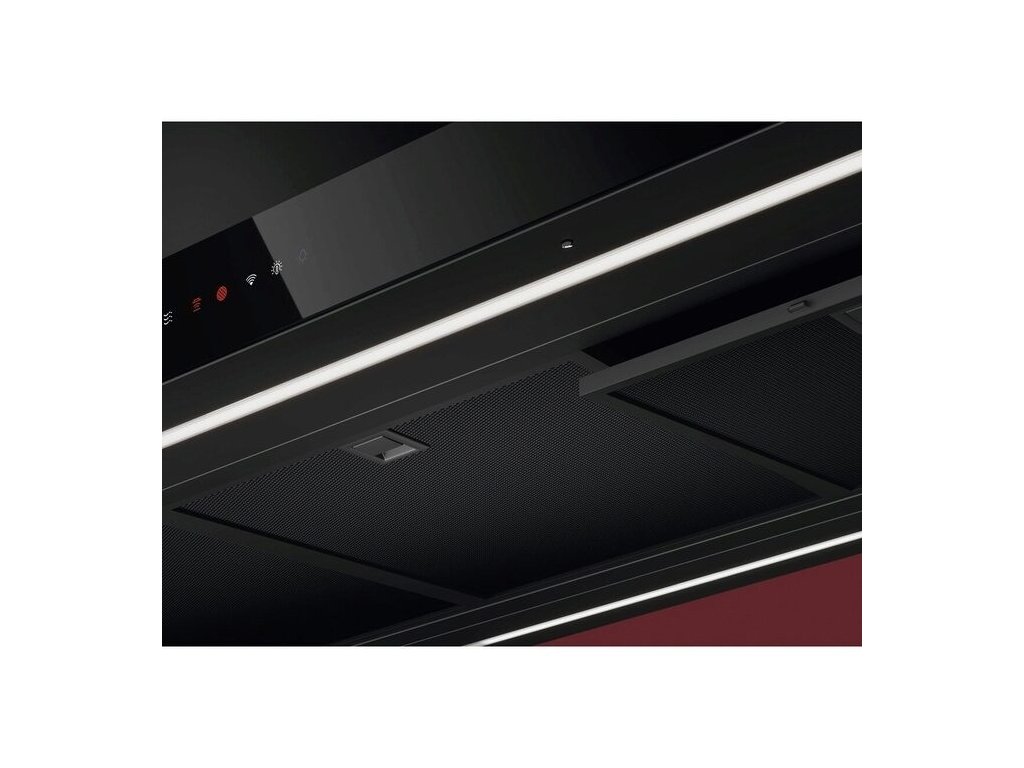 AuroraTech® automaticky přizpůsobuje barvu a intenzitu světla odsavače par podle denního času, abyste dosáhli perfektního kuchyňského prostředí a zvýšili své pohodlí. Abyste aktivovali chytré osvětlení, použijte aplikaci.