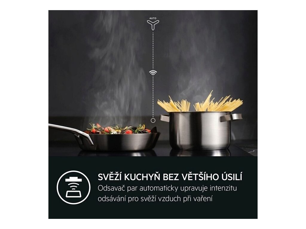 Hob2Hood® propojí varnou desku s odsavačem par a při každém vaření vám v kuchyni zajistí svěží vzduch. Ventilátor automaticky přizpůsobí rychlost, aby odvedl nežádoucí pachy a vy jste se mohli soustředit na přípravu pokrmů.