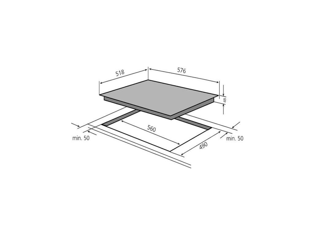 Rozměry pro vestavbu (V׊×H): 4,8 × 55 × 49 cm