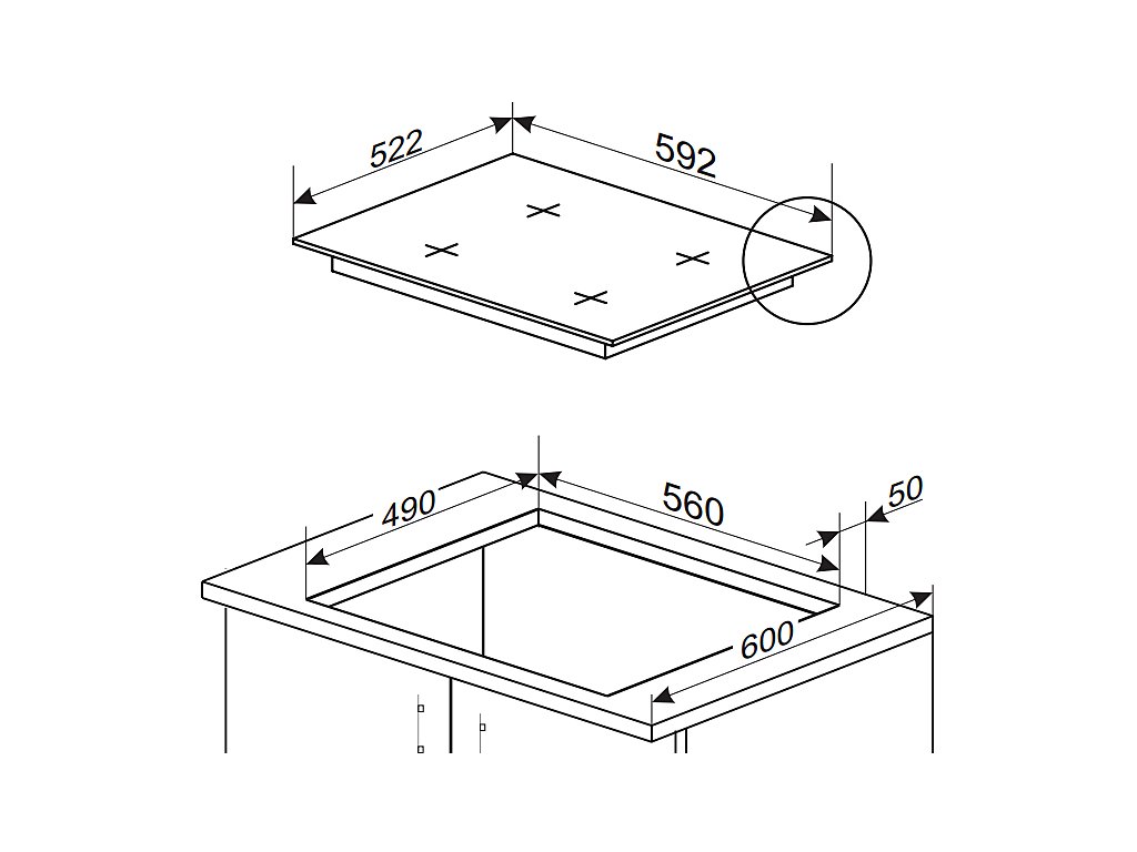 Rozměry pro vestavbu (V׊×H): 5 × 56 × 49 cm