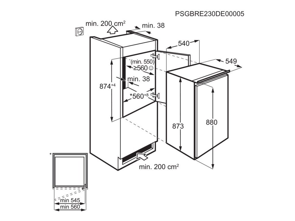Vestavné rozměry (mm): 880 x 560 x 550