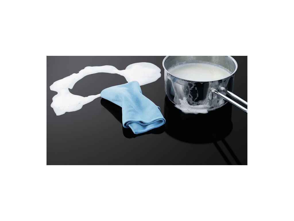 Uchovávejte vaši varnou desku při přípravě jídla čistou. Díky indukční technologii zůstává okraj varných zón na dotyk chladný. Takže dokonce i když vaříte při vysokých teplotách, rozlité jídlo můžete odstranit snadno a bezpečně ihned, jakmile něco takového nastane.