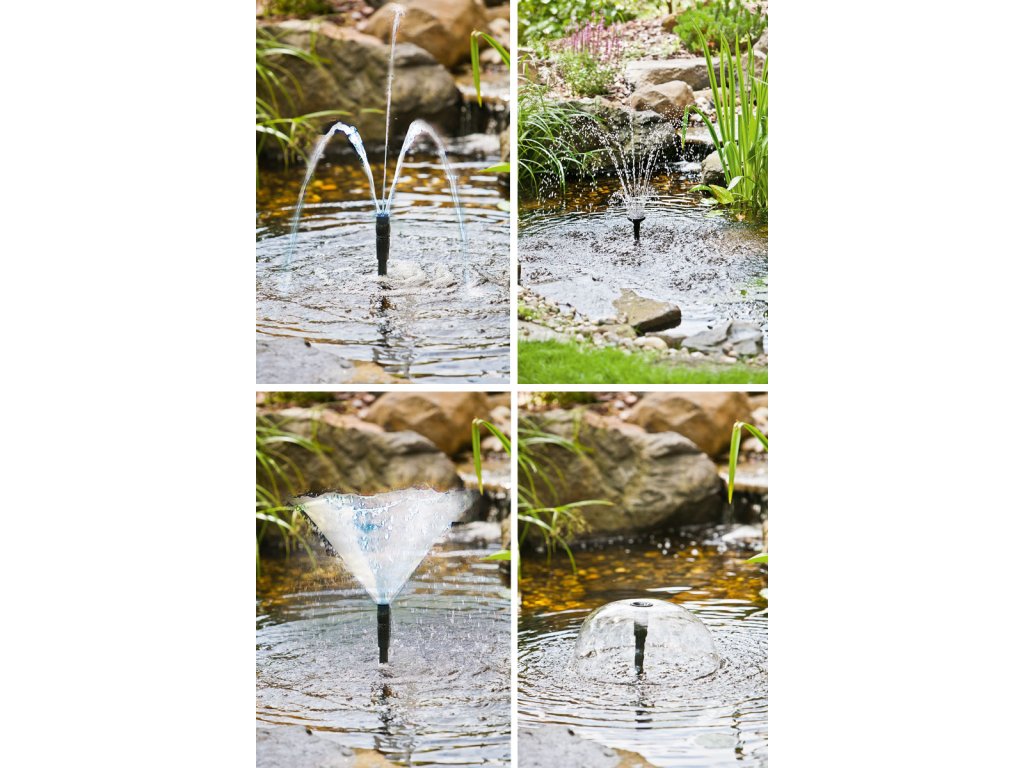 Čerpadlo má velice nízkou spotřebu elektrické energie a vysoký stupeň účinnosti. Při vývoji byl kladen důraz na tichý chod, funkčnost a snadné čištění. Čerpadla jsou určená pro zahradní jezírka, okrasné nádrže, rybníčky s rybami, fontány, dekorační fontánám a k prokysličování vody. Při stálém provozu je znát nízká spotřeba. Snadná údržba díky jednoduchému rozebrání, bez použití nářadí. Je vybavené teleskopickou trubkou (20 až 48 cm) s kohoutem pro regulaci výšky efektu a přípojkou na vodní chrlič, možnost regulace sklonu teleskopické trubky. Obsahuje 2 efektové nástavce pro vodní hry. Horní kryt čerpadla s jemnými filtračními drážkami, nepropustí větší nečistoty, které by mohli ucpávat efektovou vodní trysku a zanášet rotor.