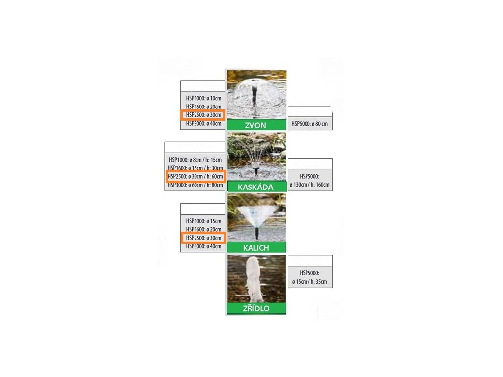 Vhodné pro: vodní efekty, jezírkové nádržky, vodní chrliče, zřídla