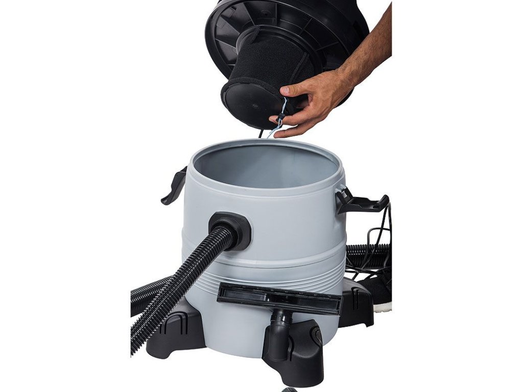 V praxi to je tak, že vysavač pro jezírko saje dokud se nádoba nenaplní. Pak se vypne a sám vodu s nečistotami vypustí. Jezírkový vysavač odstraňuje nečistoty až z hloubky 180 cm. Bohaté příslušenství, jednoduše uskladníte na praktických držácích na těle vysavače, včetně filtračního sáčku. Jednoduché přenášení díky robustnímu madlu.