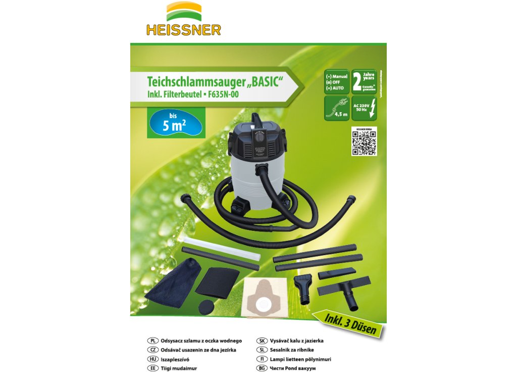 Heissner jezírkový vysavač "Basic" do 5 m², 1200-1400 W, včetně příslušenství F635N-00 + Slevový kupón 200,- Kč
