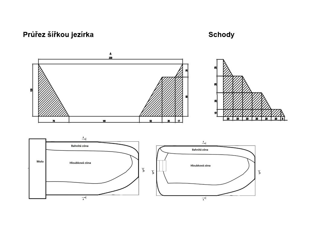 Na vybudování jezírka můžete použít náš návrh jezírka, který je přizpůsoben pro co největší koupací zónu, nebo si ho můžete libovolně přizpůsobit dle možností místa ve Vaší zahradě a dle vašeho požadavku. Je jen zapotřebí nepřekročit maximální rozměr, který je určen rozměrem jezírkové fólie a to 3,36 x 2,38 a do hloubky 1 m.