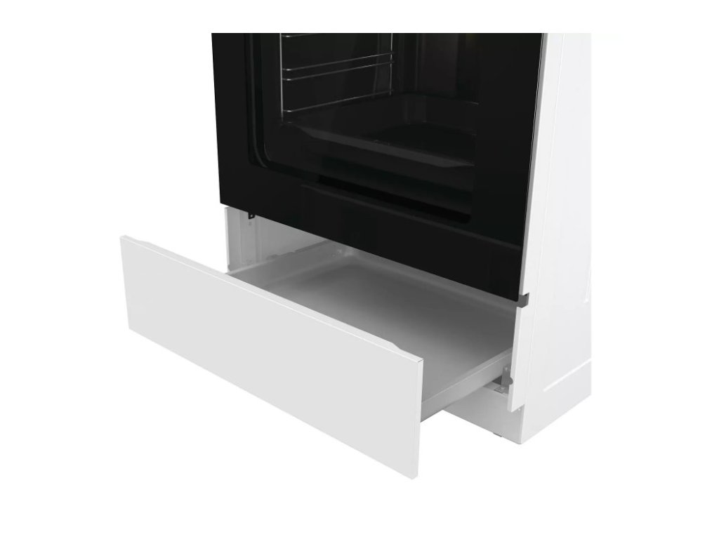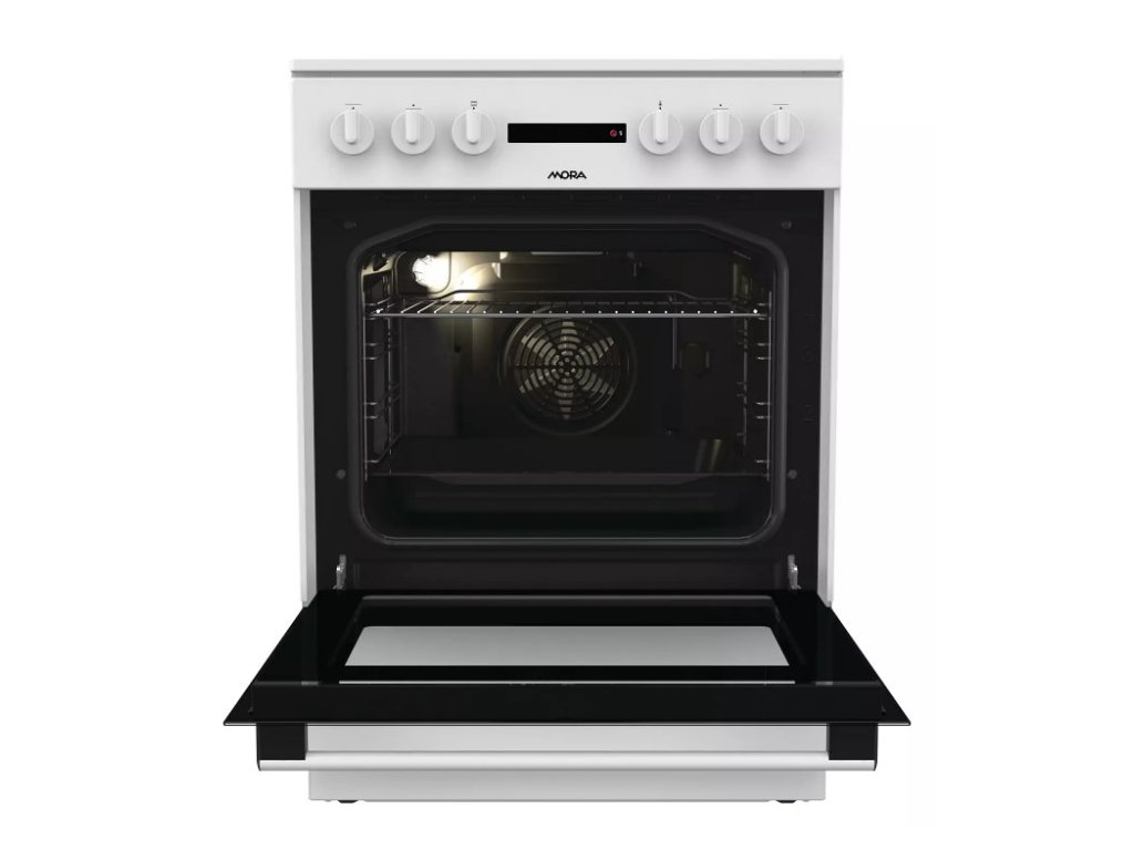 Elektrický sporák C 8265 AW6 v šířce 60 cm v klasickém bílém provedení se sklokeramickou deskou a multifunkční troubou energeticky spadá do úsporné třídy A. Materiál použitý na varnou desku je tepelně odolný, snadno omyvatelný a vydrží zátěž až 100 kg, navíc s ukazatelem zbytkového tepla na desce jste chráněni před nepříjemným popálením nebo jinými nehodami. 71 l trouba je vybavená 11 pečicími programy, které jsou navržené přesně podle potřeb konkrétních jídel. Vykouzlíte například výbornou pizzu jako z italské restaurace (program Pizza), pomalu upečete pečínku a efektivně rozmrazíte hotové porce jídla. Pokud si rádi pochutnáváte na hranolkách nebo kuřecích nugetách, ale nedopřáváte si je tak často kvůli vysoké kalorické hodnotě, můžete také zkusit program pro horkovzdušné fritování bez tuku. Hotovky většinou volíme tehdy, když nás tlačí čas. Se speciálním programem pro hotová a mražená jídla ho ušetříte ještě víc, protože si připravíte chutný oběd rychleji, bez nutnosti předehřívání trouby. Výsledek však bude dokonalý, a tak si v klidu vychutnáte třeba kuřecí nugety, lasagne, hranolky nebo croissanty. Zvykli jste si, že předehřátí trouby trvá celou věčnost? Na to teď zapomeňte. Tato trouba se předehřeje na 200 ˚C do 5 minut, což je mnohem rychleji, než bývá zvykem. Nové bezpečné závěsy dvířek zaručují bez Vaší asistence velmi tiché a šetrné zavírání dvířek trouby. Ve spodní části sporáku je praktický úložný prostor, do kterého snadno uložíte příslušenství v podobě roštu a MAXI pekáče XXL o objemu až 8 l. Perfektní vyčištění vnitřního prostoru po každém pečení zajistí funkce ECO CLEAN, díky které odstraníte i větší nečistoty bez nutnosti použít čisticí prostředek.