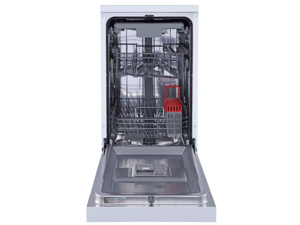 volně stojící myčka Mora SM 526C3 W je díky šířce pouhých 45 cm vhodná i do menších kuchyní, kde je třeba hospodařit s každým centimetrem. I přes svou menší šířku má však až 3 úložné koše a poradí si s 10 sadami nádobí. Nádobí dokonale umyje díky třem ostřikovacím ramenům a pěti výškovým úrovním proudu vody, takže bude bezvadně čisté, i když bude myčka opravdu plná a nádobí bude hustě naskládané. Horní koš slouží pro pečlivé a šetrné mytí příborů a kuchyňského náčiní. Skrytý ovládací panel je opatřen tlačítkovým ovládáním, displejem a praktickými funkcemi, jako je například SušeníPlus, která po ukončení programu automaticky pootevře dvířka, aby tak unikla pára a následný sušicí cyklus byl efektivnější a energeticky úsporný. Samozřejmostí je úsporný ECO program, program pro sklo nebo AUTO program, který sám zvolí optimální parametry mytí. Praktický je i odložený start až o 24 hodin. Myčka má navíc šikovný samočistící filtr, a tak automaticky odstraní zbytky mastnoty a jídla ve filtru a zamezí nesprávnému chodu spotřebiče. Se systémem AquaStop se nemusíte obávat nemilého překvapení v podobě vytopení.