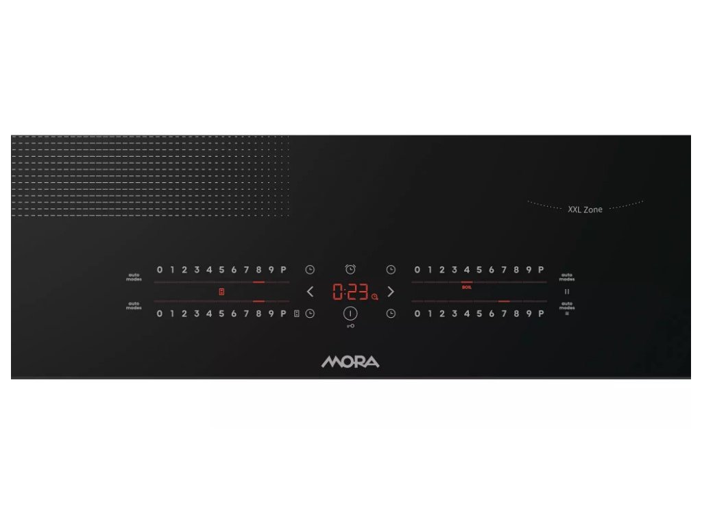Vařte s indukčními deskami MORA bez omezení. Indukční vestavná deska MORA VDIS 677 C s posuvným dotykovým ovládáním Slider nabízí maximální flexibilitu a univerzálnost, pokud jde o počet, velikost nebo tvar nádobí – od velmi malých až po velké, včetně jakýchkoli netypických tvarů. Díky speciální osmiúhelníkové zóně FlexiZone umožňuje vaření prakticky po celé ploše indukčního varného panelu. Pokud však nepotřebujete využívat celou tuto zónu, není nutné ji aktivovat a můžete vařit jako na běžné varné ploše. Deska má dvě zóny FlexiZone, takže můžete využít obě, nebo jen jednu z nich. Praktické broušené hrany umožňují snadnou montáž desky do roviny s pracovní plochou. Deska automaticky zaznamená polohu hrnců a aktivuje příslušnou zónu, pod kterou se hrnec nachází. Aktivace proběhne do 10 sekund od zapnutí, přičemž ji můžete spustit i manuálně. Jednou z dalších skvělých funkcí je extra výkon SuperBoost, který zvyšuje intenzitu ohřívání a zkracuje čas potřebný na ohřev. Funkce KeepWarm udržuje stabilní teplotu 70 °C, díky čemuž si hotová jídla uchovají svou teplotu i původní chuť, dokud je nebudete servírovat. Funkce EasyMelt šetrně rozpustí čokoládu nebo máslo při konstantní teplotě 42 °C, čímž vytváří dokonalé podmínky pro rozpouštění bez spálení. Tuto funkci lze využít i pro šetrné rozmrazování. TimeService uchovává záznam o tom, jak dlouho už vaříte, takže délku vaření můžete snadno zkontrolovat přímo na varné desce. S funkcí Timer lze nastavit časovač vaření až na 99 minut, po jejichž uplynutí se varná deska automaticky vypne. Doplňkem je tzv. kuchyňská minutka TimeMinutes, která je nezávislá na varných zónách. Po uplynutí nastaveného času vás upozorní speciální zvukový signál. Šikovnou funkcí je také Pause, která při nečekané situaci umožní dočasně pozastavit vaření bez ztráty nastavení. Některá nastavení lze přizpůsobit podle vašich preferencí, například délku a hlasitost zvukových upozornění. Funkce Memory se hodí, pokud varnou desku nechtěně vypnete. Máte pět sekund na obnovení naposledy použitých nastavení, což je užitečné zejména při přípravě více pokrmů s různými nastaveními.