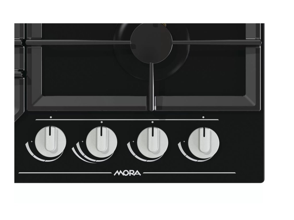 Plynová varná deska MORA VDP 645 GB8 na černém tvrzeném skle splňuje nejvyšší nároky vaření na plynu a snadnou údržbu.
