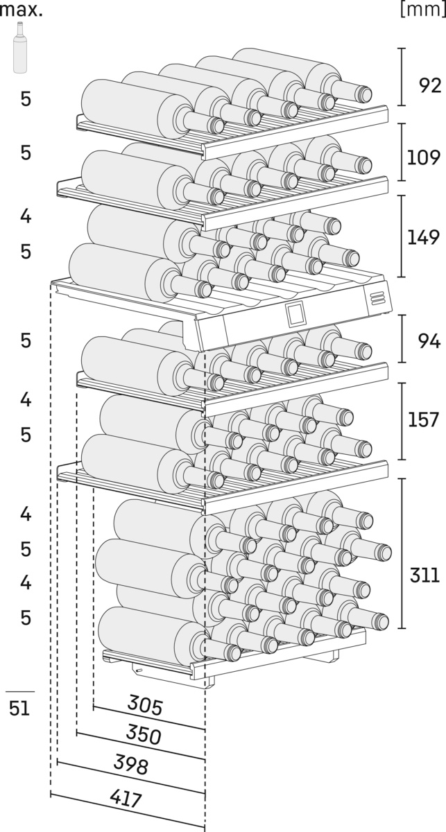 | Maximální počet láhví Bordeaux 0,75 l: | 51 |